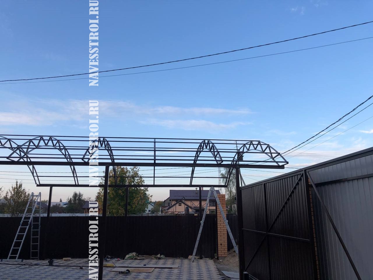 За день на даче изготовили арочный навес 5 на 7 с покрытием поликарбоната. Привезли уже готовые крашенные фермы и весь остальной материал. Все за собой убрали и увезли мусор. Молодцы!